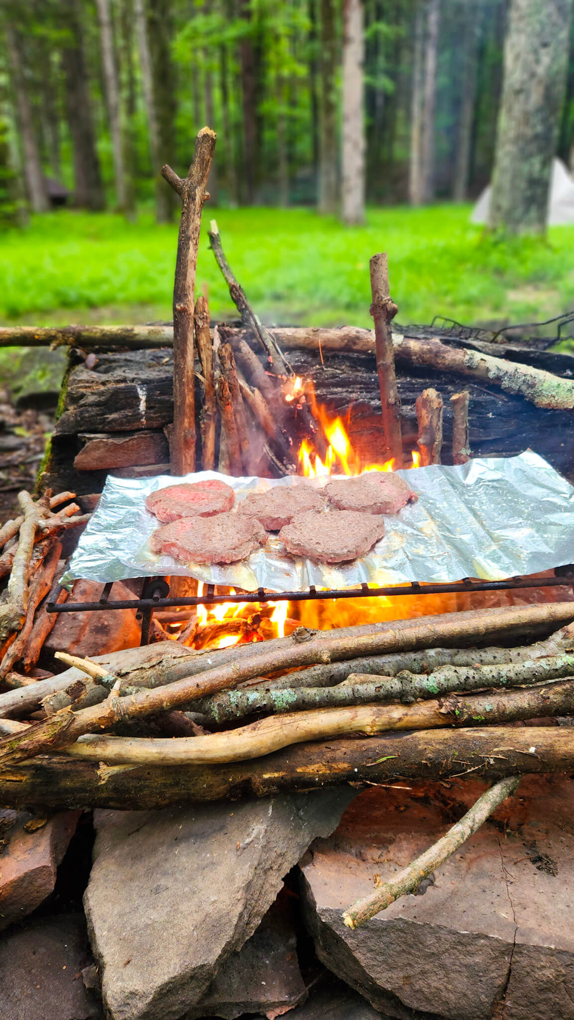 - We recommend preparing your protein and veggies into (pre-seasoned) chunks so you can grill everything over a campfire or boil in aluminum over hot coals.